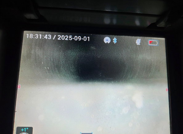이 장비는 끝이 낚시바늘 형태로 되어 있어 배관 속 이물질을 걸어 빼내는 데 적합합니다. 내시경 화면을 통해 위치를 확인하며 조심스럽게 작업을 진행했고, 결국 박혀 있던 주름관 조각을 꺼내는 데 성공했습니다.