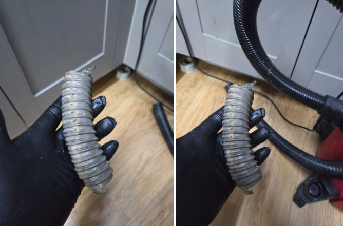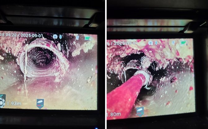 배관 속에 남아 있던 주름관 조각이 핵심 원인이었고, 이로 인해 반복적인 막힘과 역류가 발생했던 것입니다.
