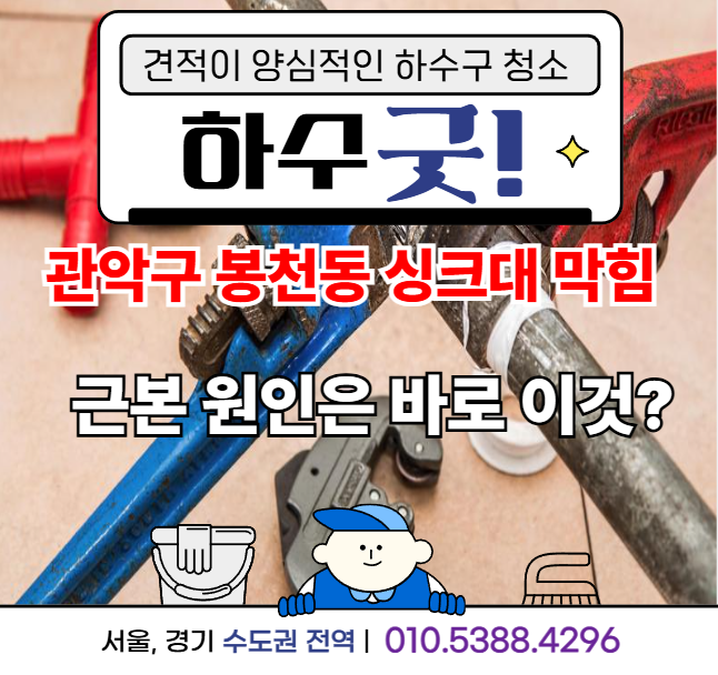 믿고 맡겨주세요. 관악구 봉천동 가정집처럼 반복되는 싱크대 막힘 문제도 하수굿이 확실히 해결해드립니다.