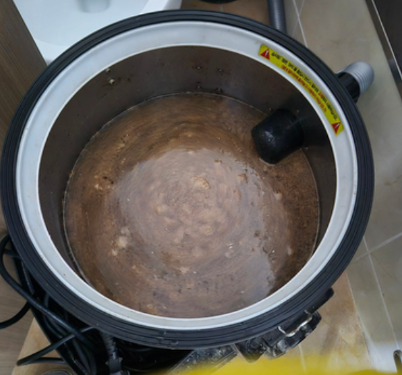 잔여 찌꺼기를 제거하기 위해 석션 청소기를 사용했습니다.